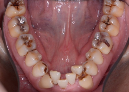 カウンセリング | 拝見したところ、上下の歯は、ずれたりねじれたりしてデコボコに生えており、著しく歯並びが乱れていました。