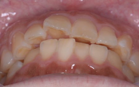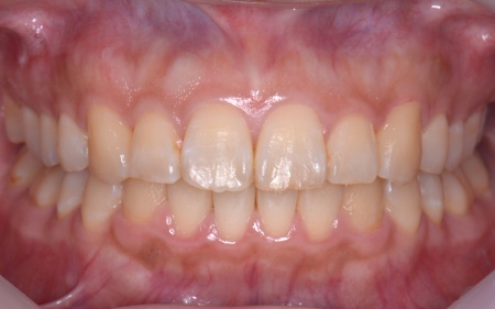 | 相談内容 | 「上前歯が前に飛び出し、下前歯はデコボコしている。噛み合わせが悪く、安定していない。また、歯ぎしりがひどいのも気になっている」とご相談いただきました。 |