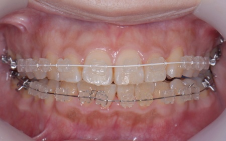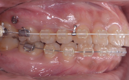 患者様には、歯の表面に「ブラケット」と呼ばれるボタン状の装置を接着して、そこにワイヤーを通して歯を動かす矯正治療を提案し、同意いただきました。