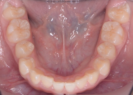 メリット デメリット また、治療にあたりお口全体のバランスを確認したところ口元の突出はなく、顎のサイズはやや小さめですが、成長期であることから歯列の拡大が可能な状態だと判断しています。 以上の内容について丁寧に説明し、治療に同意いただきました。 まず、上顎に顎の骨を広げるための固定式の矯正器具「急速拡大装置」を、下顎には歯並びの幅を広げるための「リンガルアーチ」を装着します。 次に歯の位置を整えるため、ワイヤー矯正を開始します。 最後に、歯並びが整って見た目や噛み合わせにも問題がないことを確認し、装置を取り外して第1期矯正治療を終了しました。 現在も経過観察を継続していますが、歯が元の位置に戻る後戻りも見られず、残っている乳歯から永久歯への生え変わりも順調に進んでいます。 |