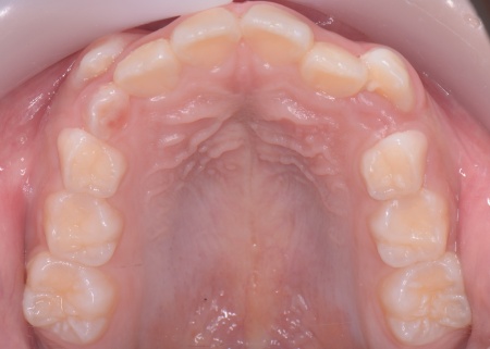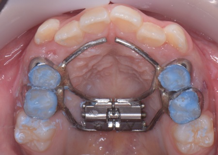 患者様のご家族は「将来的な抜歯はできるだけ避けたいので、今のうちに治療をしたい」と希望されたため、成長期の段階で歯列を広げ、歯が並ぶスペースを確保する小児期の矯正治療「1期矯正」を提案しました。